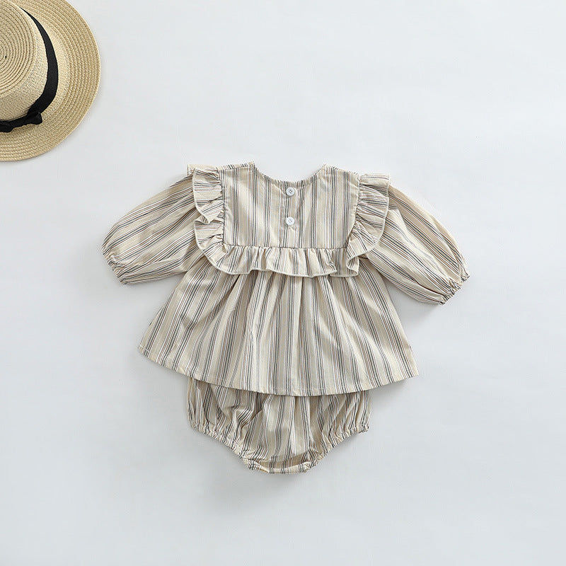 Baby Girl Striped Pattern Shirt Combo Shorts 1 Pieces Sets