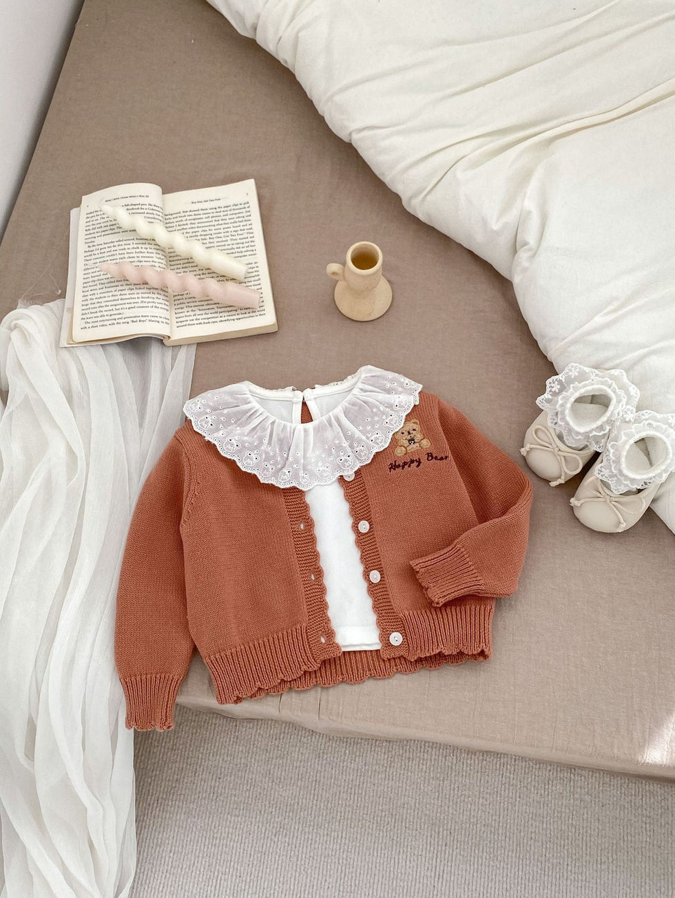 Children’s Knitted Teddy Bear And Wreath Cardigan For Spring – Boys